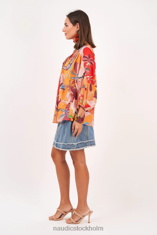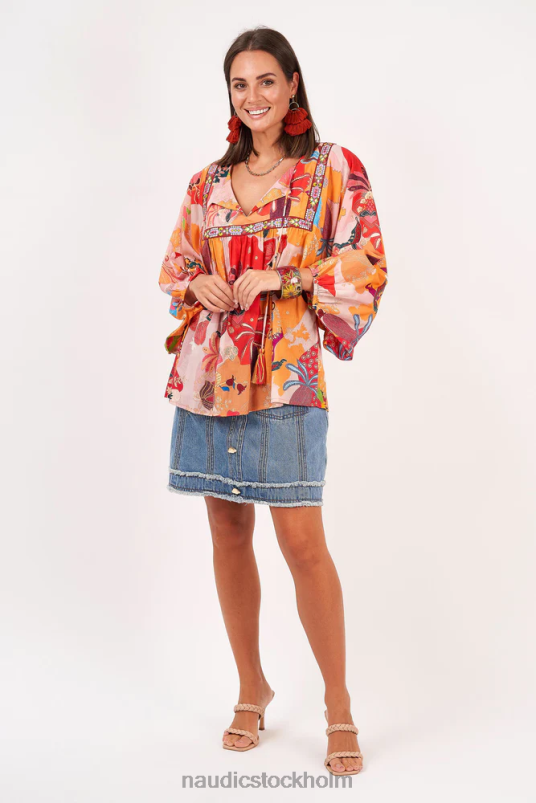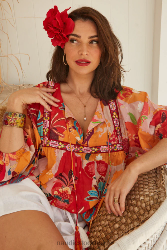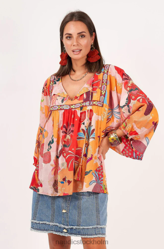 denna fantastiska bahamas topp är inspirerad av Barcelonas spännande och livfulla kultur. Med djärva färger och sprudlande, gaudi-liknande abstrakt design, kombinerar denna topp perfekt komfort med underbar, enkel stil. böljande statement-ärmar och slående gobelänger gör att denna eleganta topp är ett perfekt val för att ta dig genom dagen och in i natten.