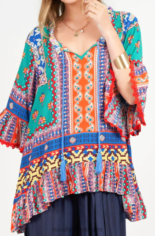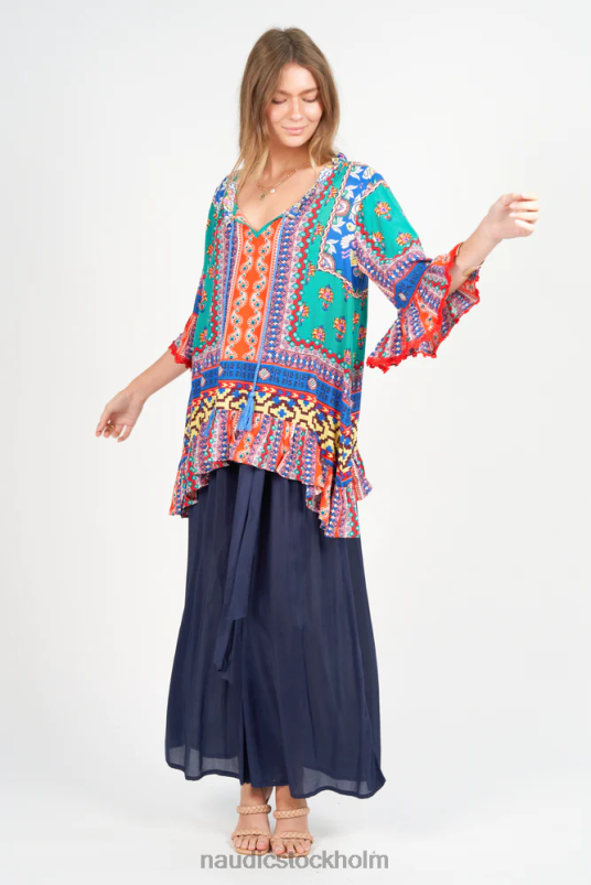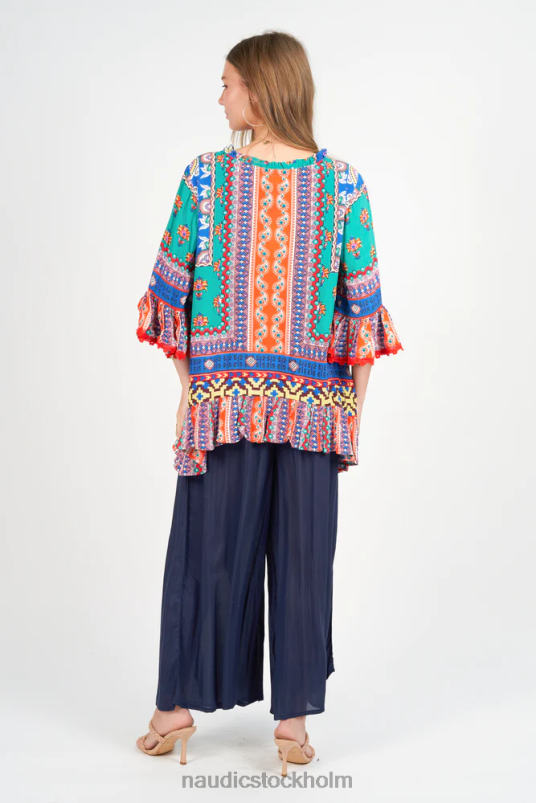 en luftig stil, med en ärm och avslutad med en flickfåll med volang. Vackra tofsar på framsidan ger den den där extra utstrålningen och beslag som kan ta dig från dag till natt på ett ögonblick.