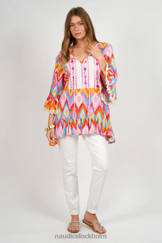 en luftig stil, med en ärm och avslutad med en flickfåll med volang. vackra tofsar och ömtåliga broderier ger hacienda-tunikan i vårt venustryck den extra utstrålningen som kan ta dig från dag till natt på ett ögonblick.