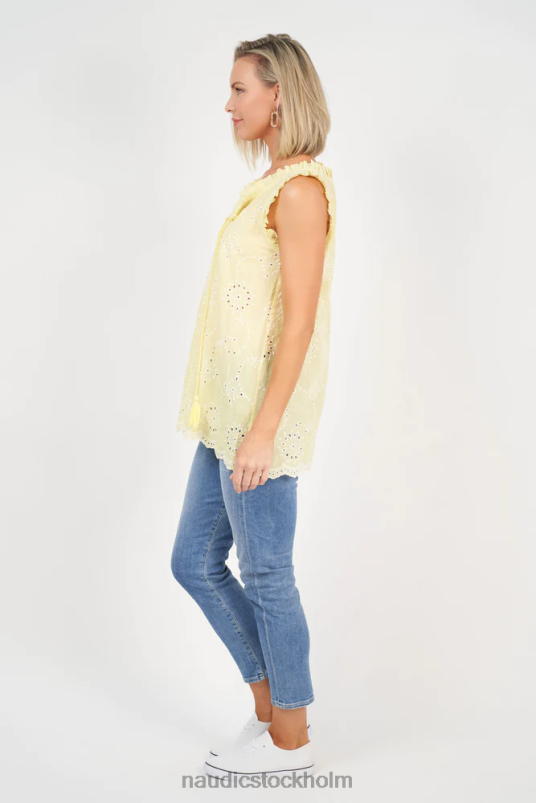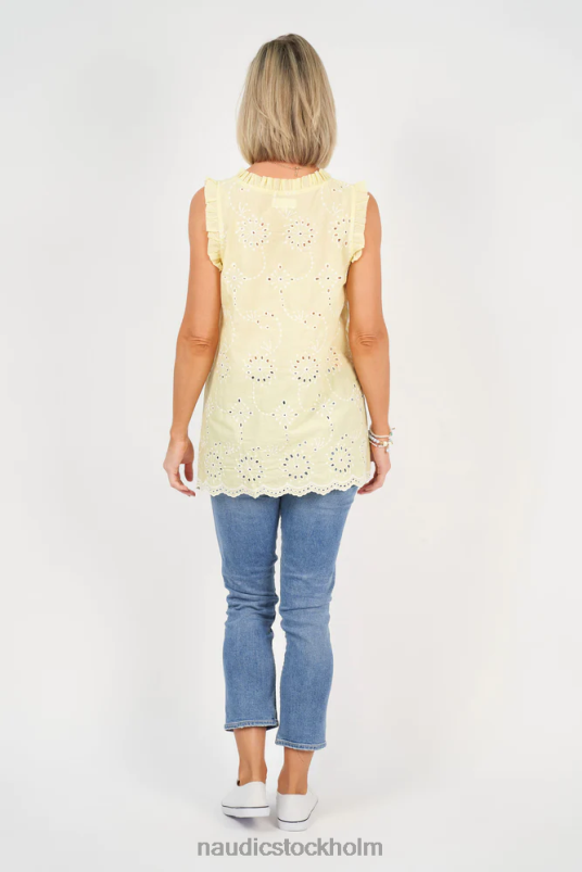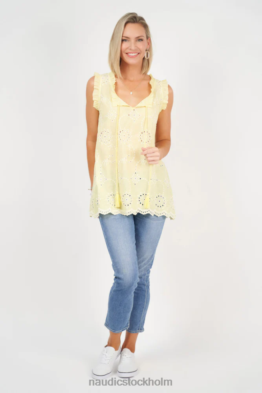 fira påsk med stil med denna vackra sophia-topp med härlig färg och utsökt broderie-anglaise som är typiskt naudiskt! denna sophia-topp kommer säkerligen att bli en av dina favoritvaror i garderoben. feminina veck pryder halsen och armarna och matchande tofsar och trim kommer säkerligen att glädjas. en luftig och bekväm topp som tar dig genom dessa varmare månader.