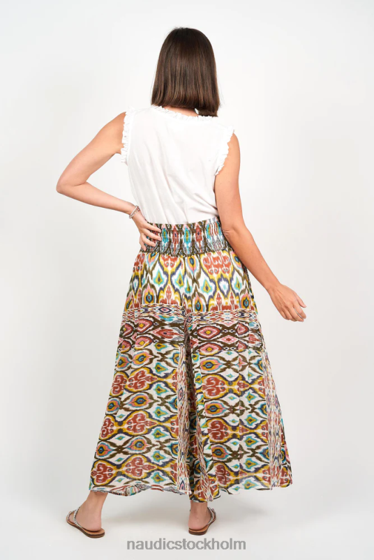 dessa moderna bohemiska byxor i vårt senaste abstrakta gaia-tryck har ett brett, mjukt, flytande ben med en smockad resår i midjan och ett fäste för att knyta hur du vill. en levande och färgstark blandning av öst- och västelement, vilket gör dem till en tidlös pjäs i din garderob.