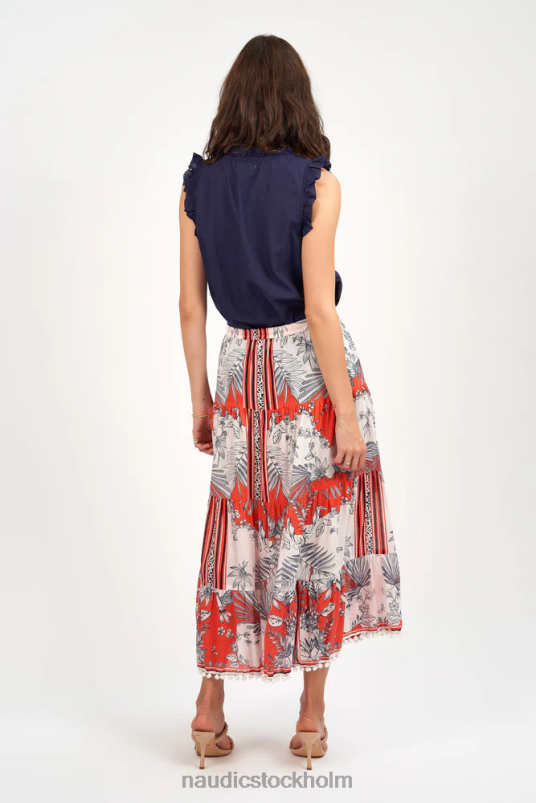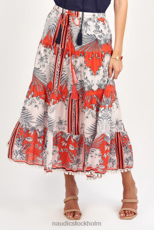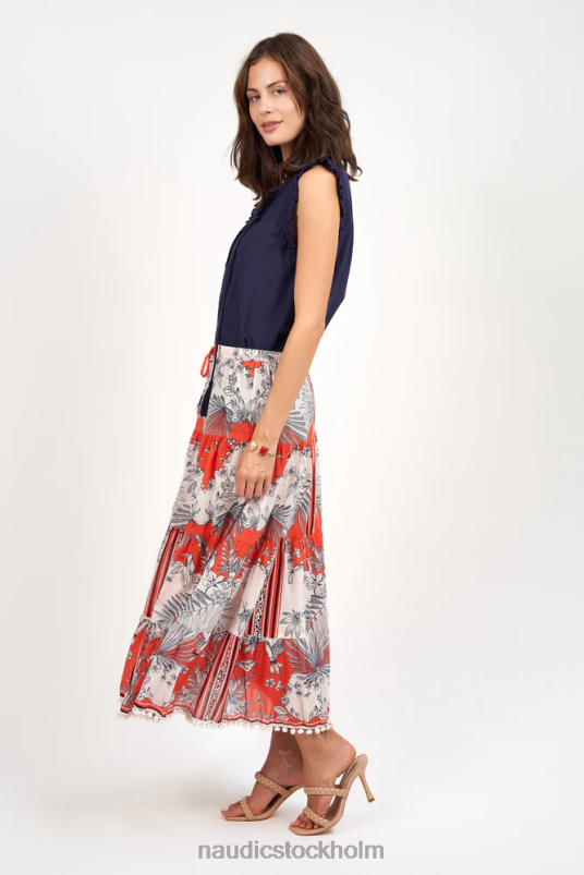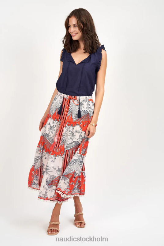 den vackra, feminina våningskjolen i vecchio-tryck är det perfekta tillskottet till din garderob. med ett bekvämt, elastiskt midjeband och tofsad dragsko är den här kjolen väldigt mångsidig så den kan avnjutas året runt! du kommer att älska de ömtåliga grädde pompomsna runt fållen som lägger till ett roligt element till din look!