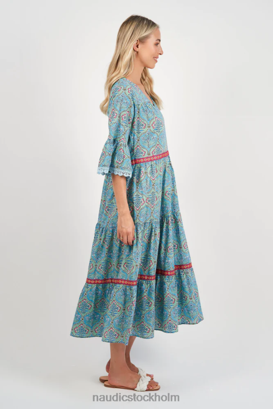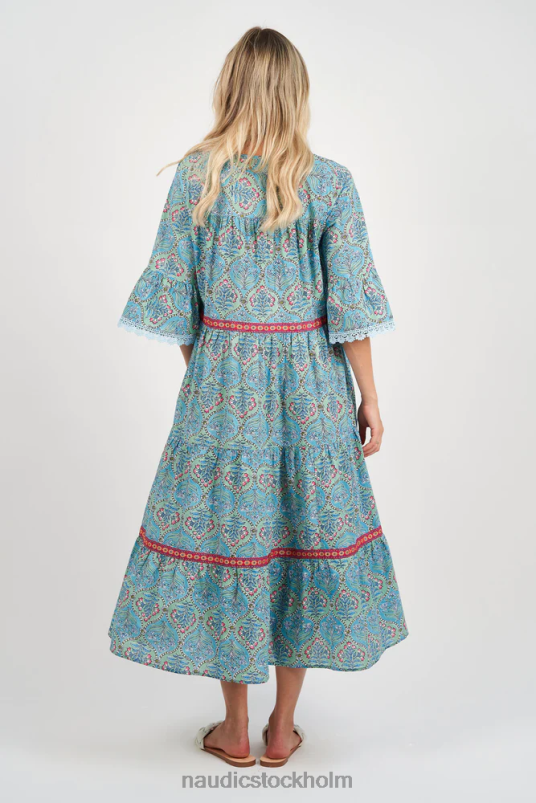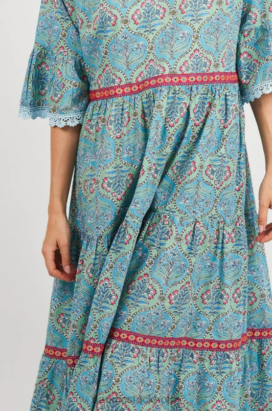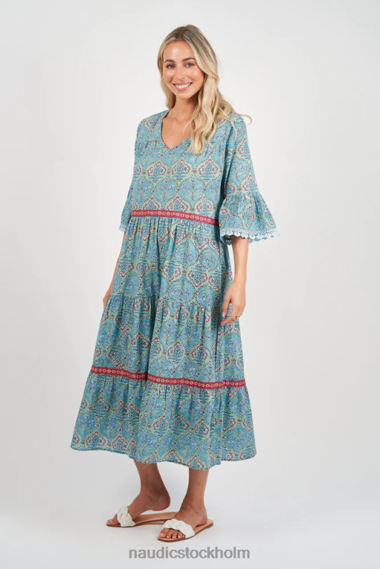 avlonklänningen har vårt underbara nya folktryck med sina milda blå och kricka blommor som tar dig direkt till en pittoresk engelsk trädgård. du kommer att älska de feminina, frillerade ärmarna och deras ömtåliga spetskanter som är perfekta för dem som gillar att ha mer täckning samtidigt som de håller sig svala under sommarmånaderna. med väv-liknande beslag, v-ringning och flytande, skiktad kjol, skapar avlon en smickrande form för alla.