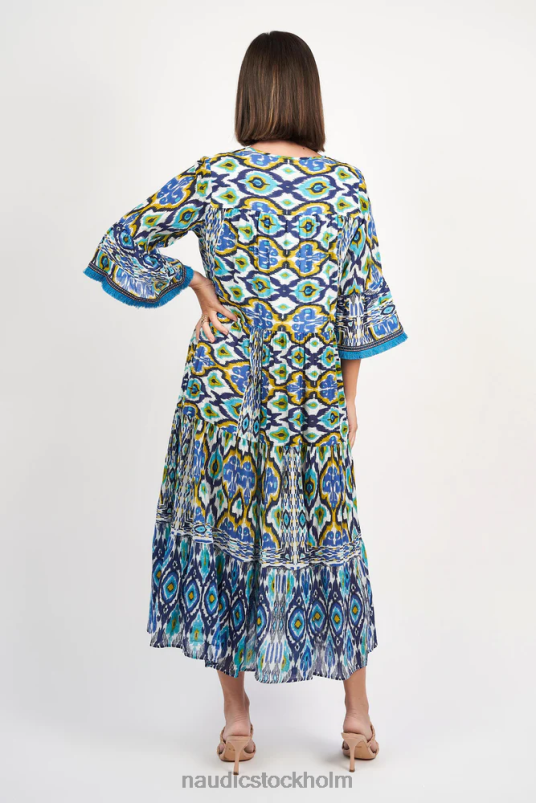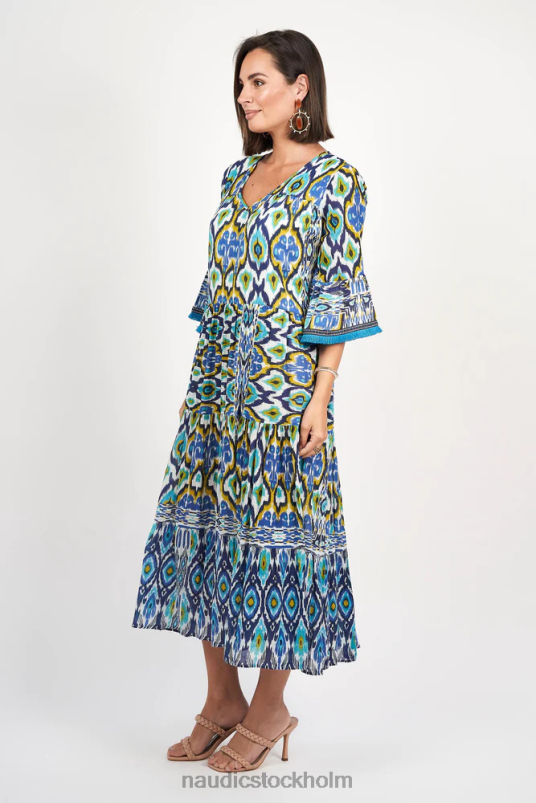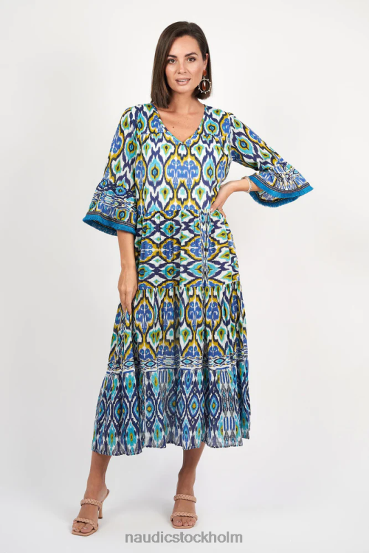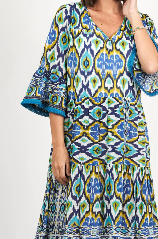 denna avlon maxi med vårt abstrakta gaia-tryck är helt enkelt underbar! du kommer att älska de feminina, volangärmarna och deras ömtåliga krickfärgade fransar som ger lite extra täckning under de kallare månaderna. härlig rynkning nära oket, en feminin v-ringning och en flytande kjol med våningar gör avlon till en smickrande form för alla. Observera att vi starkt rekommenderar att du bär en naudisk halv slip-in moonbeam med denna maxi.