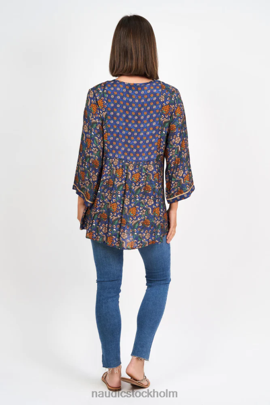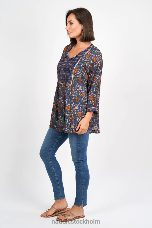 denna cypriati-topp är en del av vår utsökta vintagekollektion och har de intrikata blommorna och varma färgerna i vårt madisontryck. kontrasterande instickning på framsidan av livstycket och guldkanter gör detta till en perfekt topp att bära hela dagen och in i den svalare kvällen.