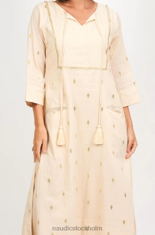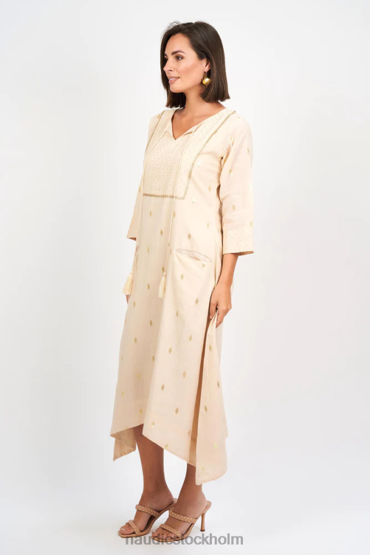 utstrålar elegant sofistikering när du bär vår liljeklänning vid din nästa speciella händelse. denna slående och unika nya design är en del av vår utsökta vintagekollektion och har delikat guldtråd och intrikata diamantdetaljer genom vårt underbara lurextryck. 3/4-ärmar ger lite extra täckning när du går in i de kallare månaderna. ett fyrkantigt livstycke trimmat i guld och den mjukt böjda fållen med sidosplittringar ger lite extra glamour till denna fantastiska klänning!
