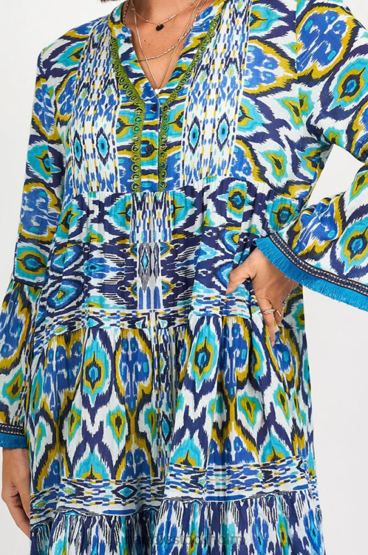 den här ljungklänningen har vårt underbara nya abstrakta tryck gaia. Ljungklänningen har längre, böjda ärmar, ömtålig spets och fransade gobelänger, en smickrande form för alla. ett perfekt val att bära hela dagen och in på en svalare kväll. Observera att vi starkt rekommenderar att du bär en naudisk halvslip in moonbeam med den här klänningen.
