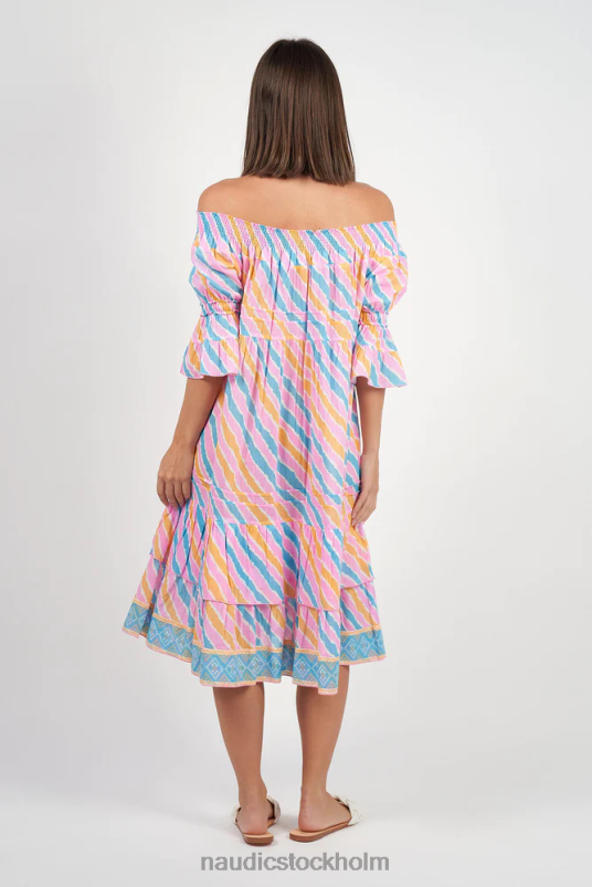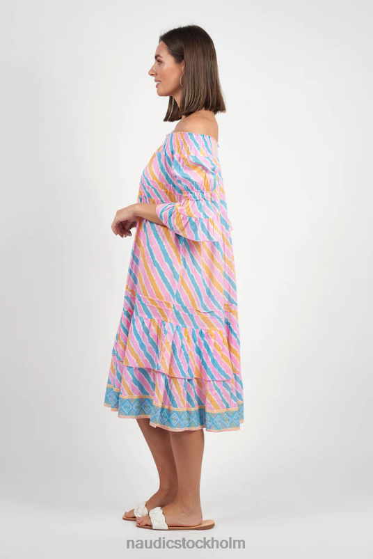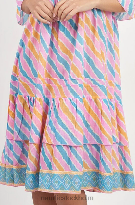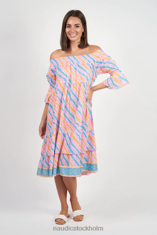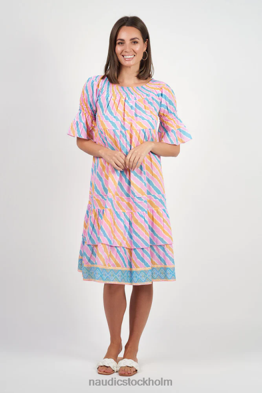 se söt ut som godis när du kliver ut i den här underbara nya pippaklänningen i adria-tryck. detta lekfulla nya tryck har ett smickrande diagonalt mönster med härliga pastellrosa, orange och blåklinttoner. denna mångsidiga och feminina klänning kan bäras från axlarna för en elegant look eller högre upp om så önskas. härliga insticksdetaljer, volangärmar och den dubbla volangkjolen med kontrasterande panel ger lite extra kul! den här härliga klänningen passar lika bra till lunch med tjejerna eller en utekväll med någon speciell! om du älskar den här klänningen, se till att ta en titt på den i vår vackra korall-färg!