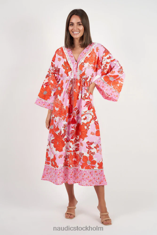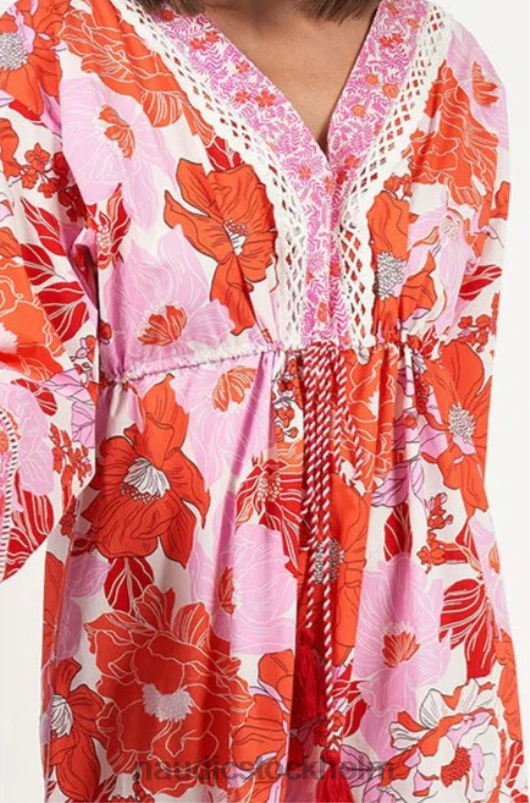 älskare av djärva och vackra blommor kommer att älska denna förtjusande rio-klänning i blommönster. det här sprudlande nya trycket har stora, livfulla röda och godisrosa blommor perfekt kompletterade med mer intrikat blommigt tyg på ärmar, liv och kjol. Den här snygga och populära klänningen är ytterligare förstärkt av ömtåliga spetsar i elfenben, och har en härlig v-ringning och dragsko under bysten som skapar en smickrande passform för alla. en vacker stil som passar nästan alla tillfällen.
