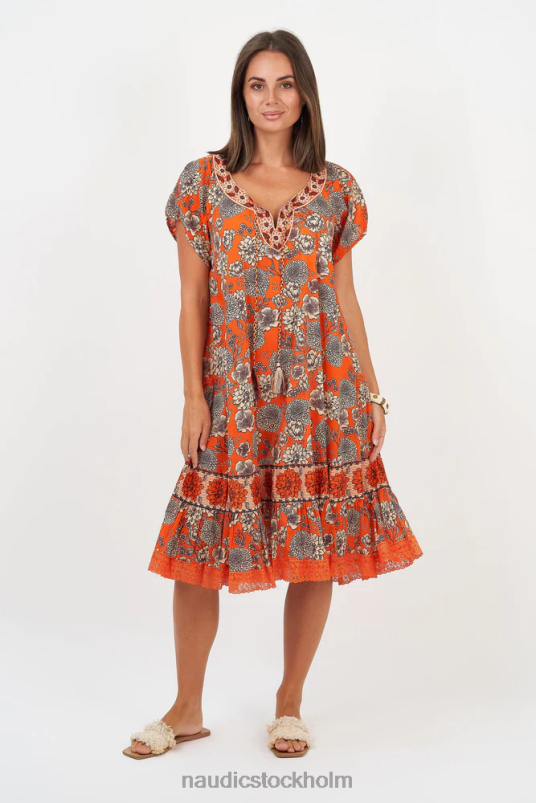 denna förtjusande sao paulo-klänning har de invecklade krysantemumblommorna i vårt fantastiska nya florenstryck. den här stilen är den perfekta vardagsklänningen som skapar en enkel men elegant look för din nästa shoppingresa. vackra signaturbroderier runt halsen gör varje sao paulo unik. ömtåliga spetskanter på fickorna och fållen gör denna sao paulo extra charmig! om du älskar den här klänningen, se till att ta en titt på den i vår vackra orange färgskala!