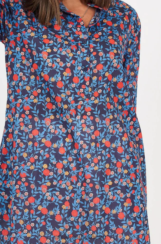 vi vet att du absolut kommer att älska den här underbara skjortklänningen med de delikata röda och orangea rosorna i vårt hampshire-tryck. den här stilen är perfekt att bära till ditt nästa poolparty eller resa till stranden med knappar längs livstycket, böjd fåll och längre ärmar för lite extra solskydd.