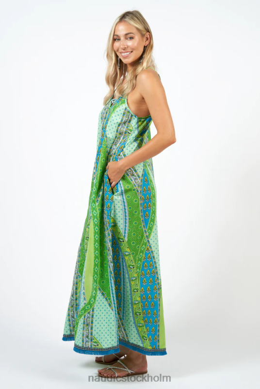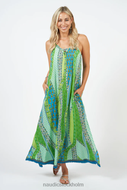 criss cross maxi i vårt djärva och lekfulla maui-tryck är det perfekta valet för varmare dagar framför sig med sina justerbara spaghettiband och flytande form med sidosplittringar. vackra topasfransar runt nederkanten av kjolen gör denna klänning till en perfekt klänning för en dag på stranden eller lunch med vänner.