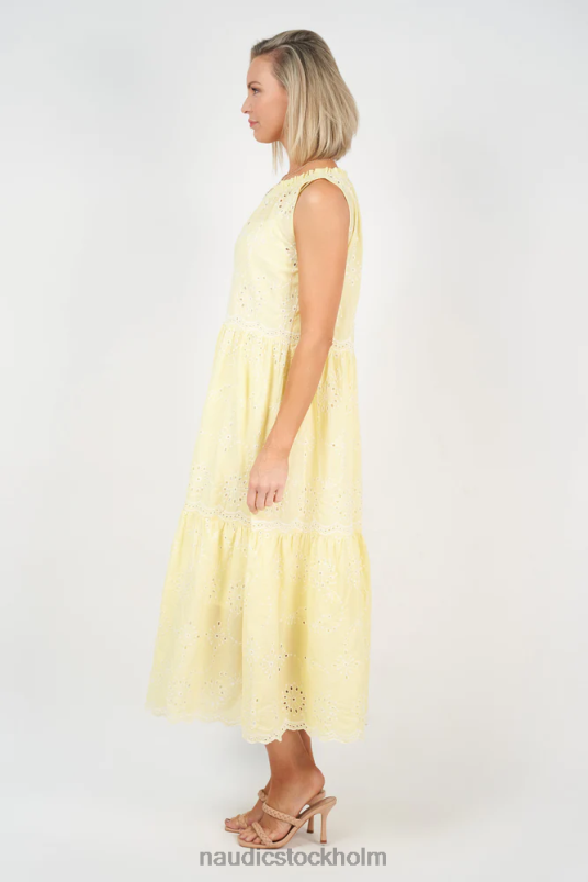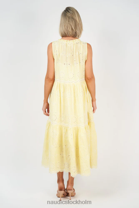 fira med stil med denna vackra mabel maxi med härlig färg och utsökt broderie anglaise som är typiskt naudiskt! med en flytande, asymmetrisk fåll och mjuk volang runt halsen är mabelklänningen ett perfekt val för lunch med tjejerna. Observera att denna klänning inte är fodrad. vi rekommenderar att du bär den med en vit naudisk slip.