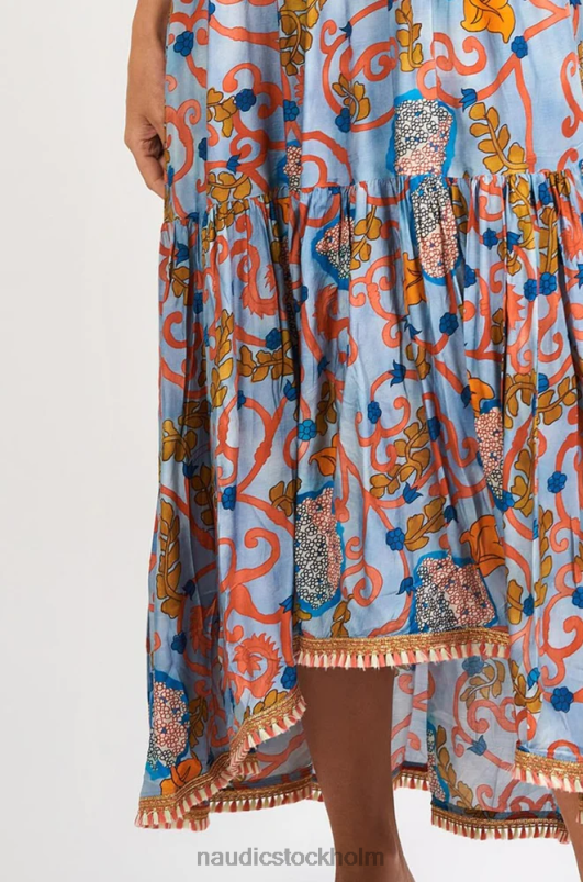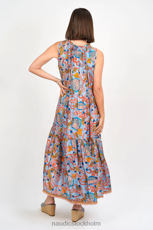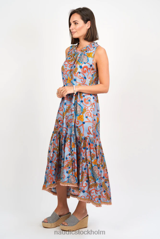 känn dig fri och flytande i denna underbara mabel maxi som är en del av vår utsökta vintagekollektion. Med de djärva blommorna och livfulla färgerna i vårt mira-tryck, har den här klänningen i nivåer en flytande asymmetrisk fåll och mjuk volang runt halsen. ömtåligt guld och tofsar på hela kjolen ger lite extra glamour vilket gör denna mabel till det perfekta valet för lunch med tjejer.