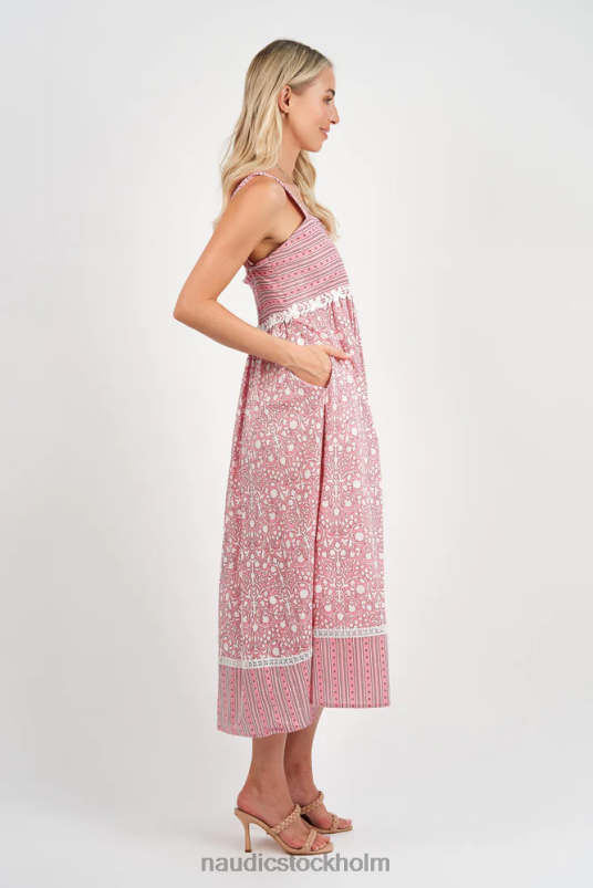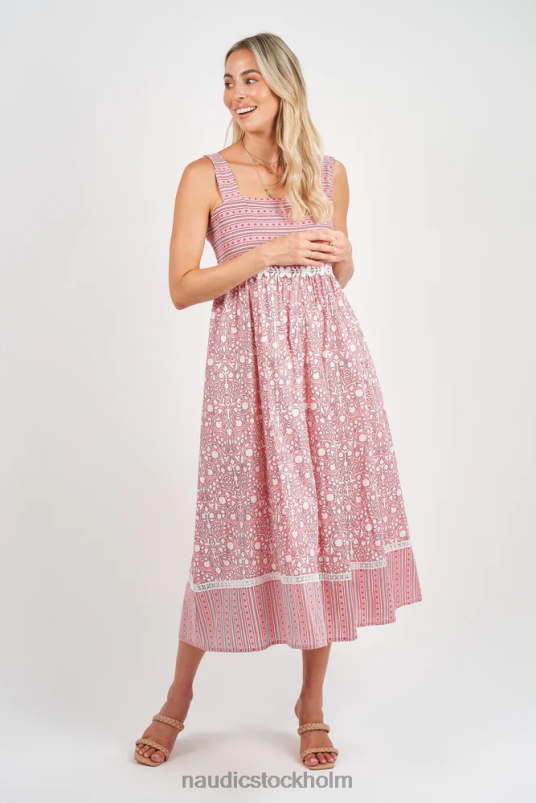 den här mila maxi-klänningen har vårt nya nuovo-tryck...en graciös, korall och vit blommig design som kontrasterar perfekt med ett delikat randigt mönster. den här mångsidiga stilen har en luftig kjol med nedre panel som matchar livstycket och delikata vita detaljer. Breda, justerbara axelband och en kroppsformad kropp med elastisk rygg säkerställer en bekväm och smickrande passform. mila är den perfekta klänningen att ta på sig för en enkel men ändå fantastisk look efter din nästa lunchdejt med tjejerna.