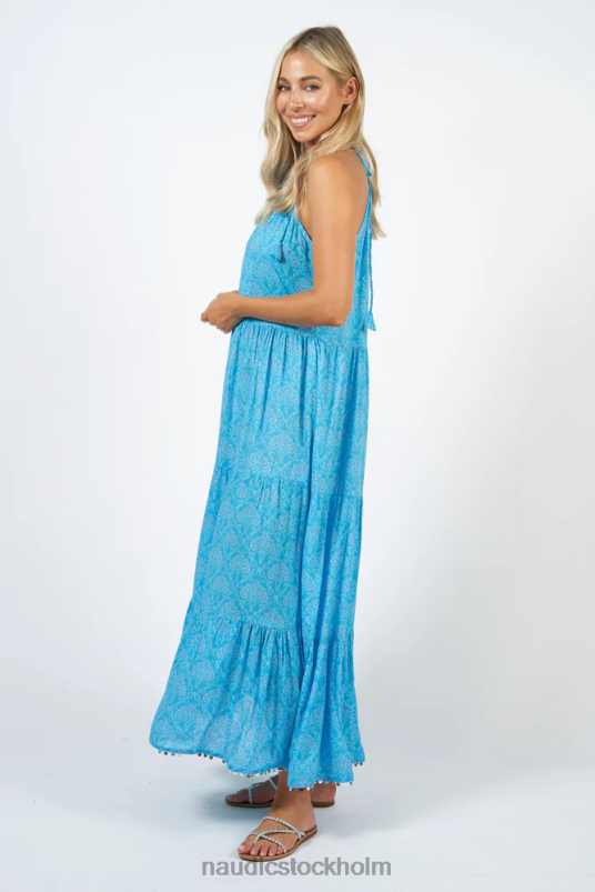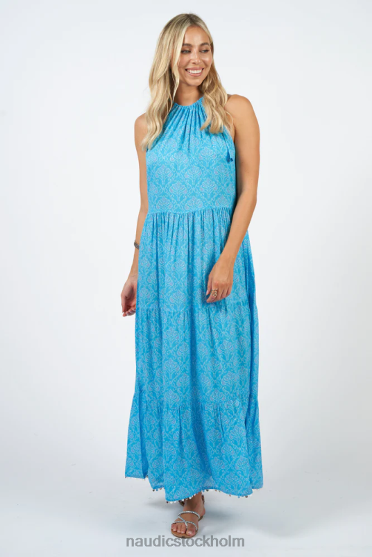 den eleganta olympia maxi är en ny design i vår naudiska kollektion och har vårt intrikata dali-tryck. den här stilen är ett härligt, coolt val för en varm sommardag med ett ärmlöst livstycke knytet i halsen och luftig kjol med våningar. en mångsidig klänning som passar lika bra för en avslappnad promenad i parken eller en mer glamorös lunchdejt med tjejerna.