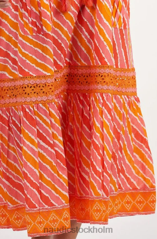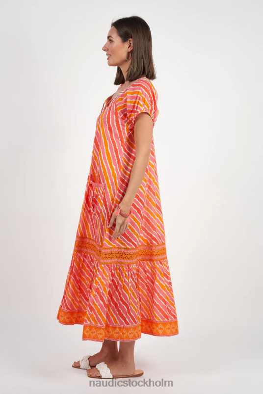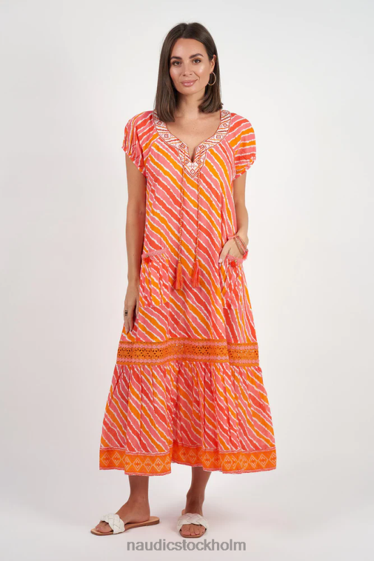 se söt som godis när du kliver ut i denna underbara nya sao paulo maxi i adria-tryck. detta lekfulla nya tryck har ett smickrande diagonalt mönster med härliga ljusa orange toner. utsökt broderie anglaise med trim på den flörtiga, volangkanten och vårt traditionella, vackra signaturbroderi runt halsen gör denna sao paulo särskilt charmig! den här stilen är den perfekta vardagsklänningen som skapar en enkel men elegant look för din nästa shoppingresa eller lunchdejt med vänner.