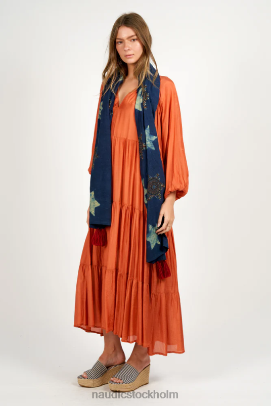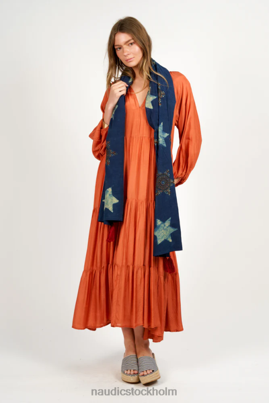 svep in dig i den mjuka och eleganta stilen av den blå stjärnhalsduken. den här halsduken är perfekt för att ge dig den där boho-looken du kan bära runt halsen eller över huvudet. dess marinblå färg gör den till ett mångsidigt plagg som du kan bära som en elegant accessoar eller som en konversationsstartare.