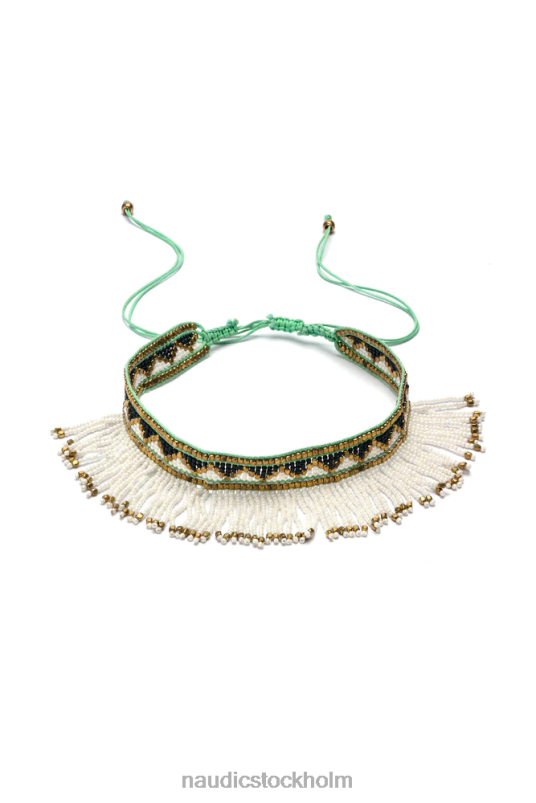hasli chocker, med ett aztekiskt band och pärlor som täcker nyckelbenen. bär den med en cami och gör den till ett statement. halsbandet gör att du kan justera längden och få den perfekta passformen.